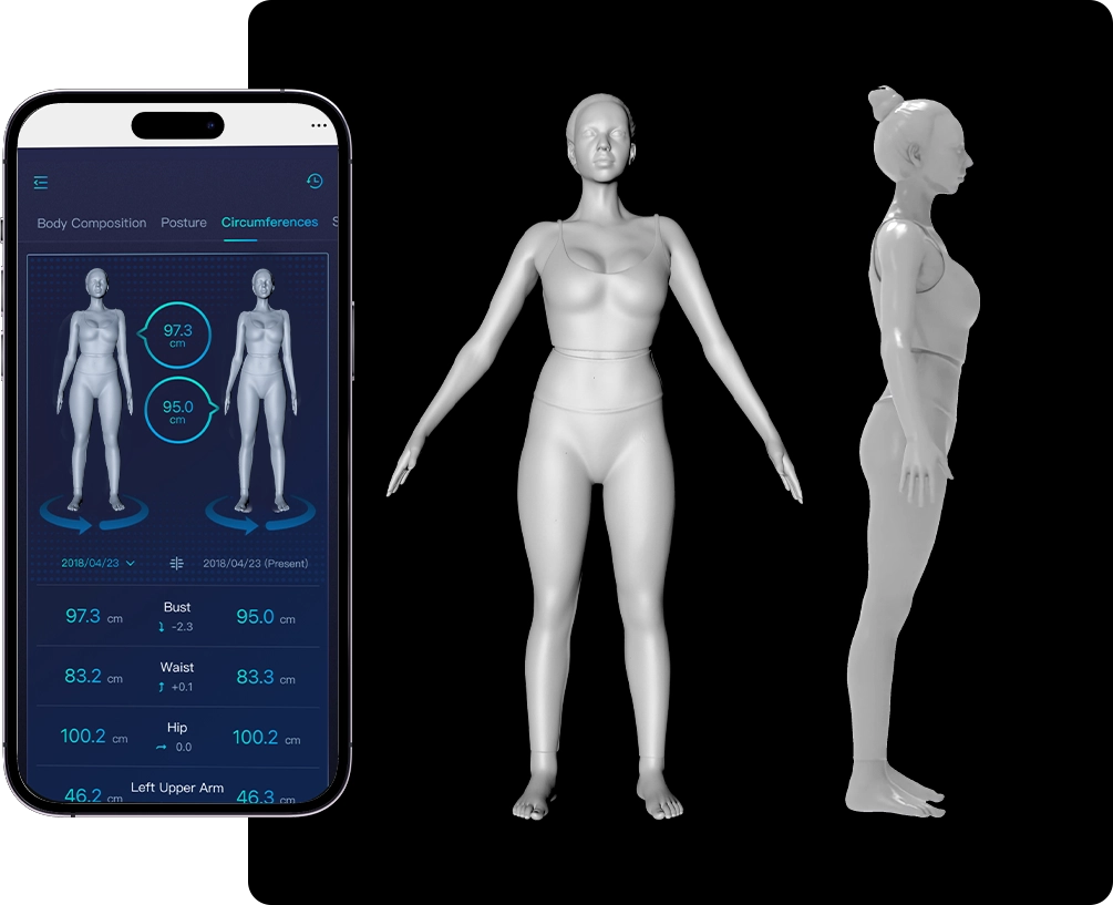 3 perc alatt egy teljes 3D testösszetétel-analízist kapsz, amely pontos adatokat mutat a tested valódi állapotáról — nem érzéseket, nem becslést, hanem objektív mérést.